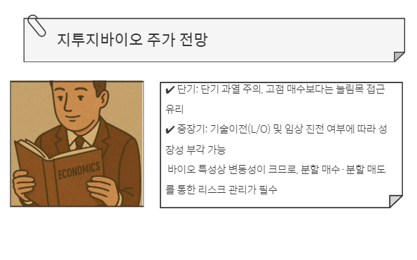 👉 바이오 특성상 변동성이 크므로, 분할 매수·분할 매도를 통한 리스크 관리가 필수입니다.