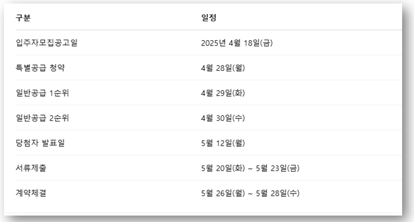 📌 본 포스팅에서는 청약 일정, 공급 세대수, 특별공급 자격 조건, 분양가 등을