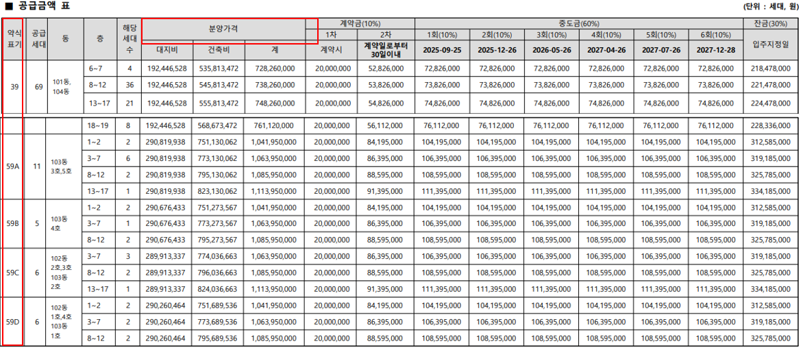 4. 분양가 및 납부금액 예시