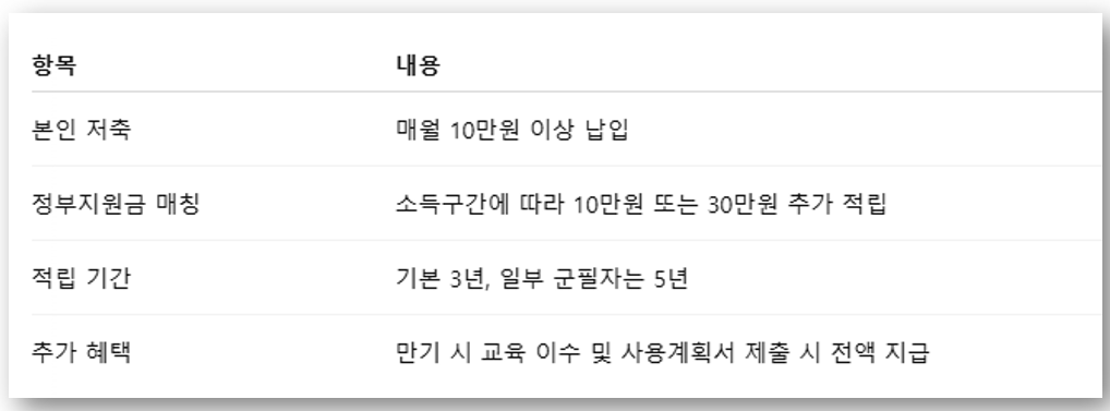 ✅ 매월 10만원 이상 저축 시 정부지원금 추가 지급