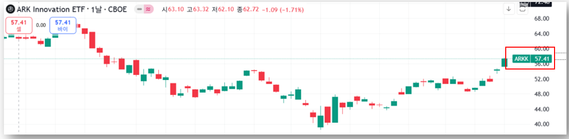 최근 급등세에 힘입어 단기 트레이딩부터 중기 투자를 고려하는 분들까지 많은 관심을 받고 있습니다! 오늘은 ARKK ETF의 최근 동향, 보유 종목, 수수료, 차트 분석까지 모두 정리해드릴테니 참고바랍니다!