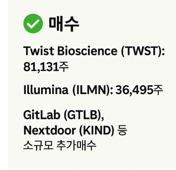 • GitLab (GTLB), Nextdoor (KIND) 등 소규모 추가매수