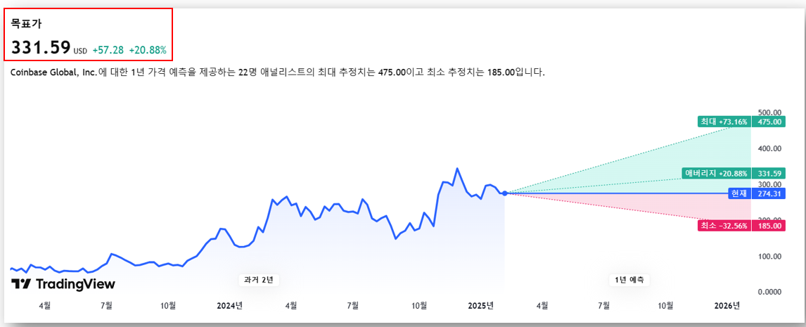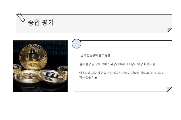 - 장기 전망: 암호화폐 시장 성장 및 기관 투자자 유입이 지속될 경우 400~500달러까지 상승 가능