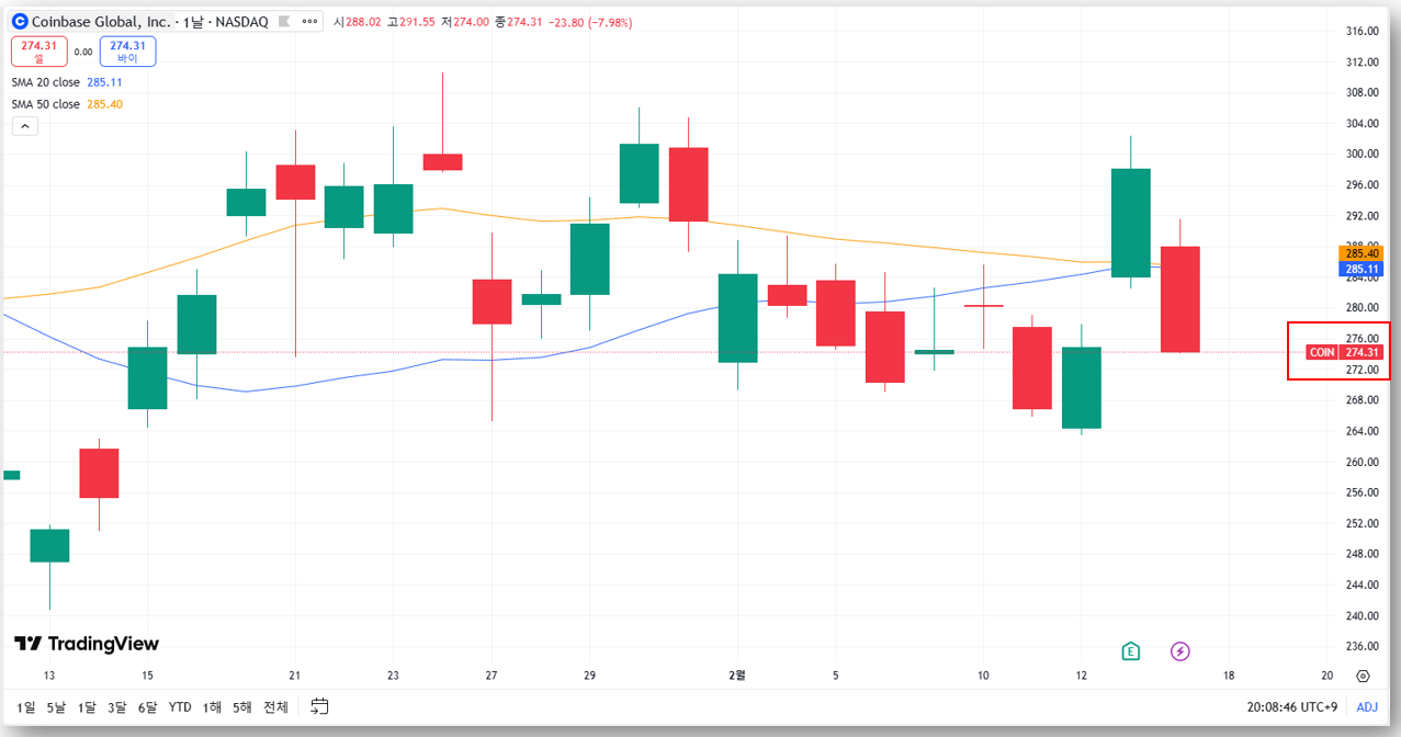 1. 코인베이스 주가 현황 및 기술적 분석