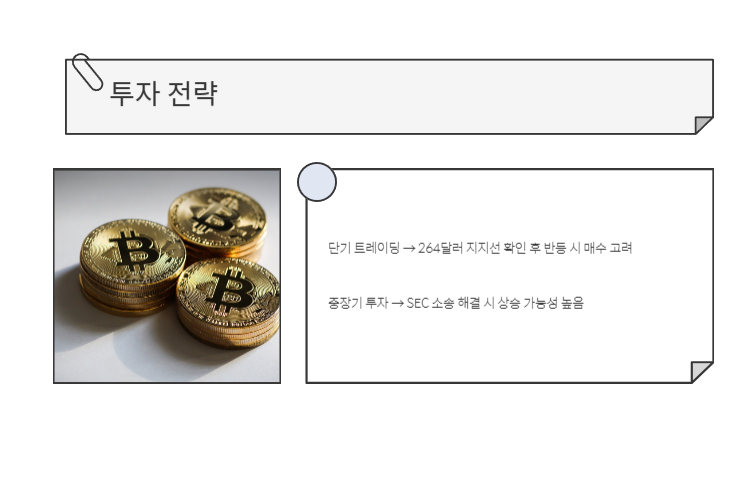 - 중장기 투자 → SEC 소송 해결 시 상승 가능성 높음