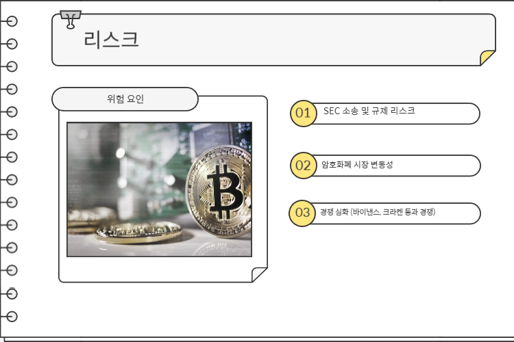 - 경쟁 심화 (바이낸스, 크라켄 등과 경쟁)