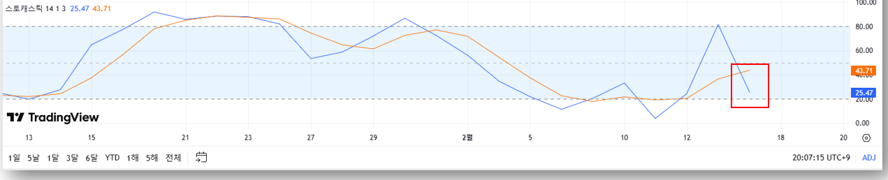 - 스토캐스틱 분석(과매도 여부 확인)