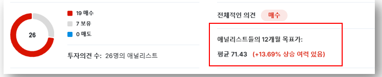하지만, 26명의 애널리스트 의견 중 19명이 매도를 권고하고 있습니다.