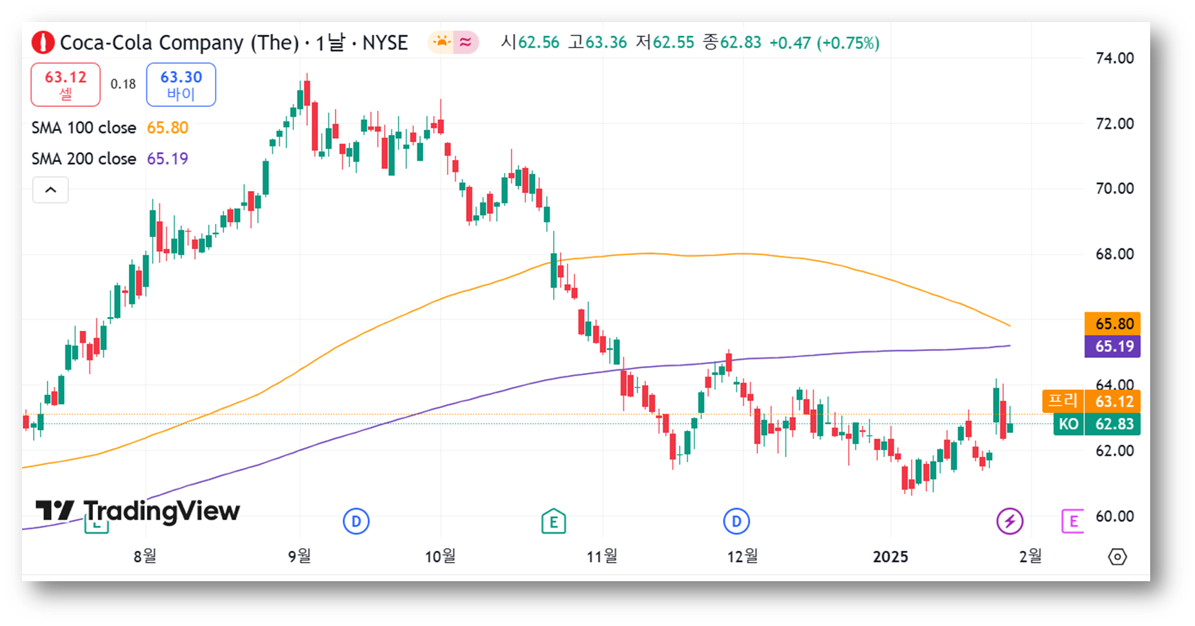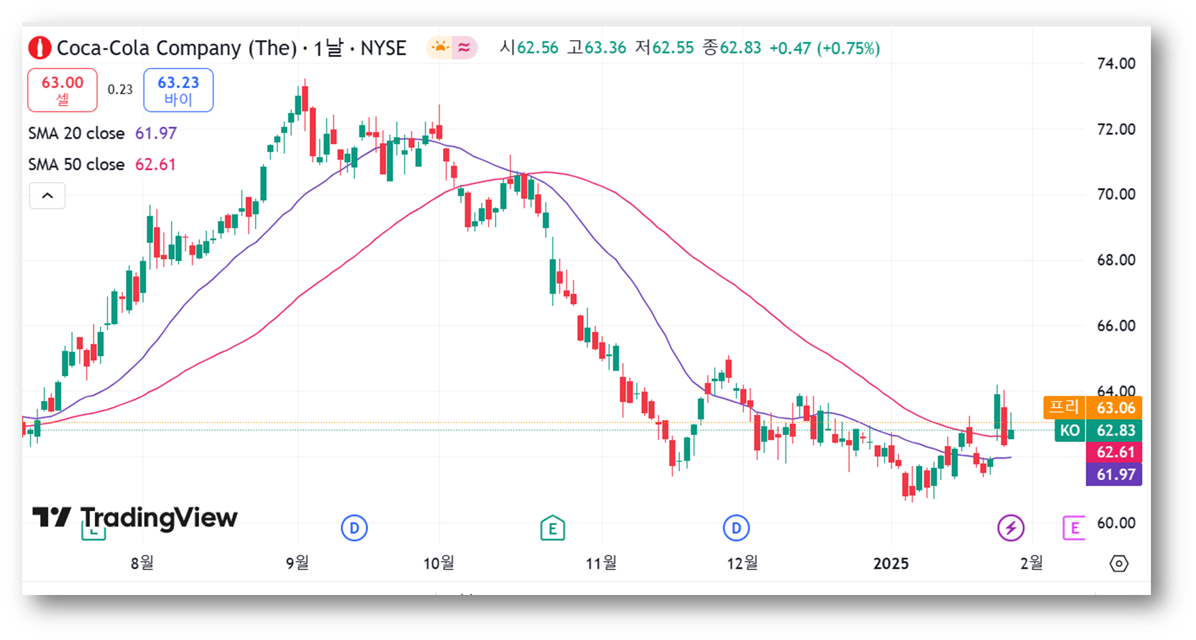 코카콜라에 대한 12개월 목표주가 평균은 71.43달러로, 현재 주가 대비 13.69% 상승 여력이 있는 것으로 분석됩니다.