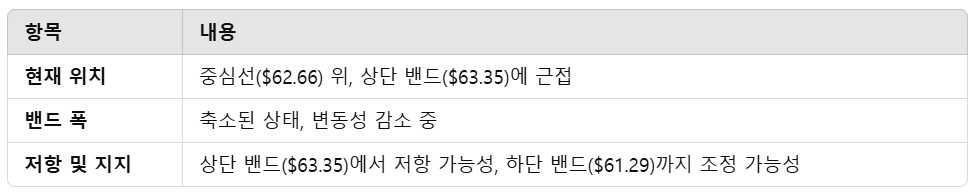 - 하단 밴드($61.29)까지 조정될 가능성도 열려 있음.