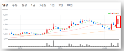 • 강한 상승세 지속! 17,500원 돌파 시 19,000원까지 추가 상승 가능