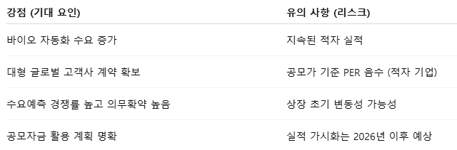 - 중장기 시각: 바이오 랩오토메이션 확대 → 매출 본격화 시점 주목