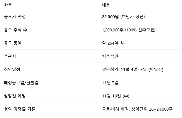 - 단기 수익: 수급·테마 기대감으로 상장 초기 상승 가능성