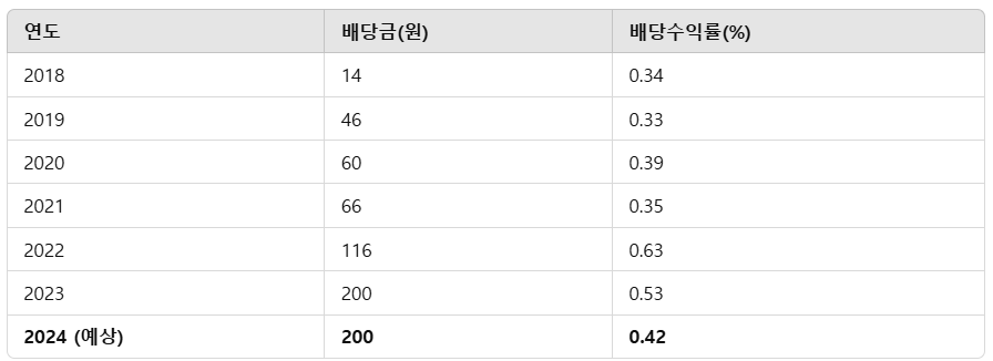 ✔ 성장주 특성상 배당 수익률은 낮지만, 주가 상승에 따른 시세 차익 기대 가능