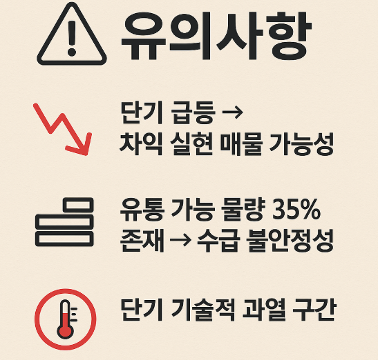따라서 무리한 단타보다는 분할 매수 전략,혹은 기관 수급 및 IR 발표 모니터링 후 진입 여부를 판단하는 것이 바람직합니다.