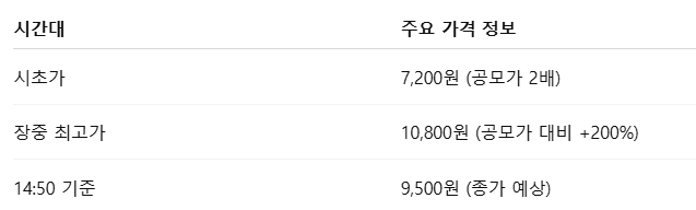 상장 첫날부터 공모가 대비 +160% 이상 급등하며 ‘따상’을 달성해 투자자들의 이목을 집중시키고 있습니다.