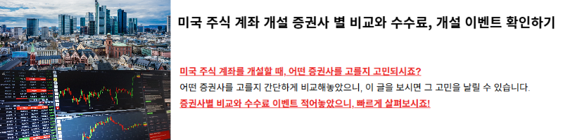 | 미국 주식 계좌 개설 증권사 비교와 수수료 및 계좌 개설 이벤트 확인 하기 (키움증권, 미래에셋증권, 삼성증권) (0) | 2024.11.11 |