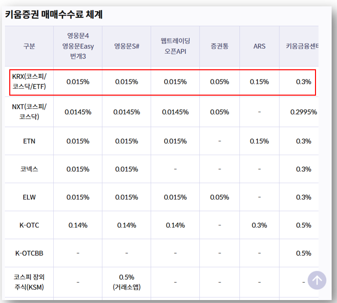 - 현금 매매 수수료 (HTS/홈페이지): 0.015%