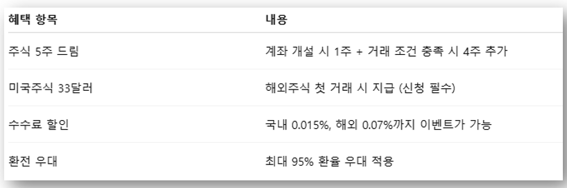 지금 계좌를 개설하면 최대 5주, 33달러, 수수료 우대 등 다양한 혜택을 받을 수 있으니, 절호의 기회를 놓치지 마세요!