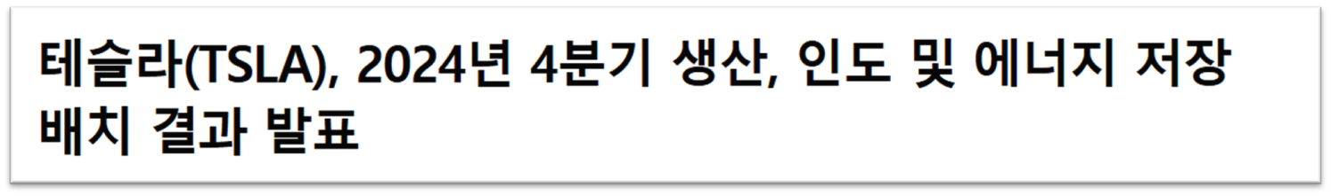 - 연간 인도량 감소: 테슬라의 연간 차량 인도량이 전년 대비 처음으로 감소.