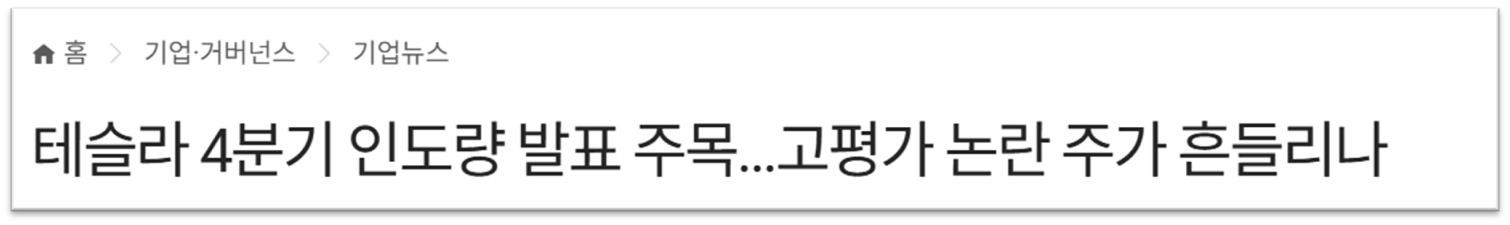 테슬라 4분기 인도량 발표 주목...고평가 논란 주가 흔들리나 - ESG경제