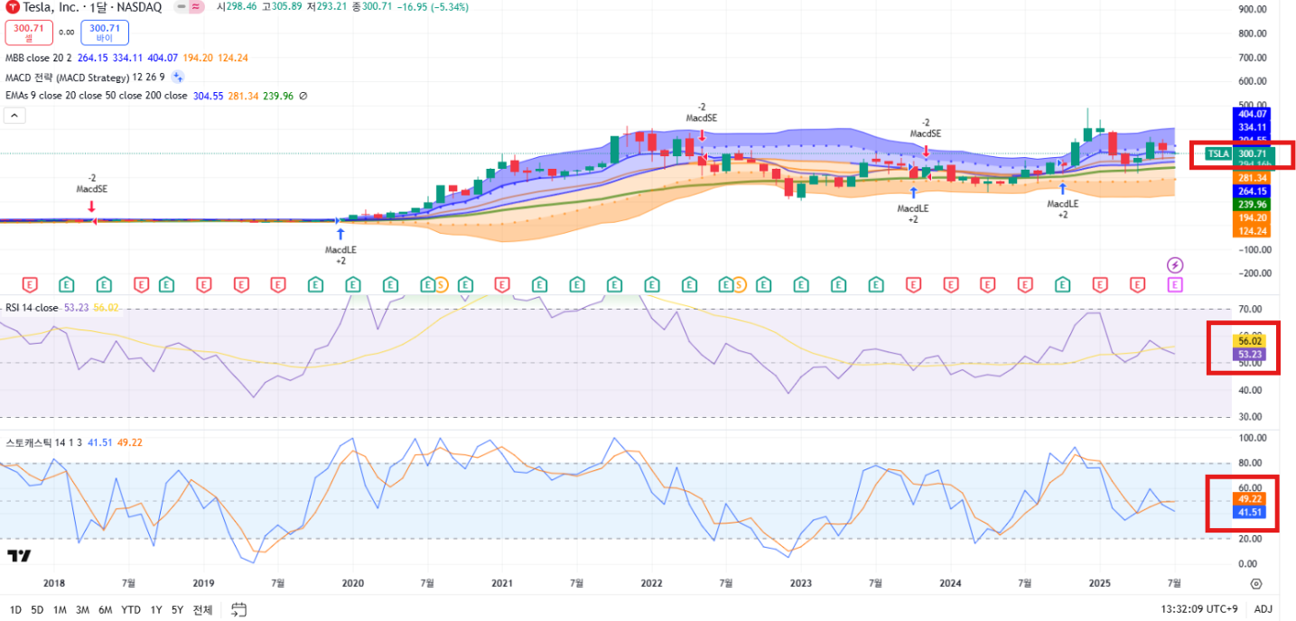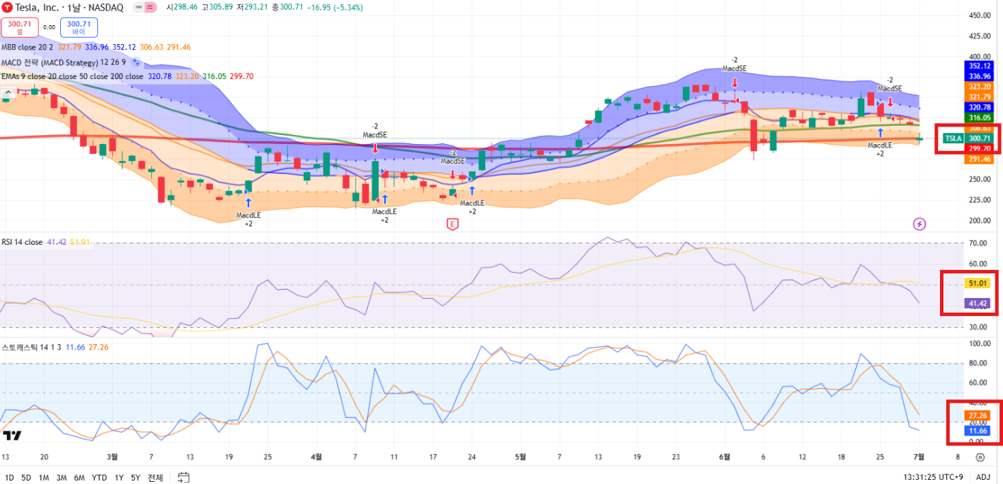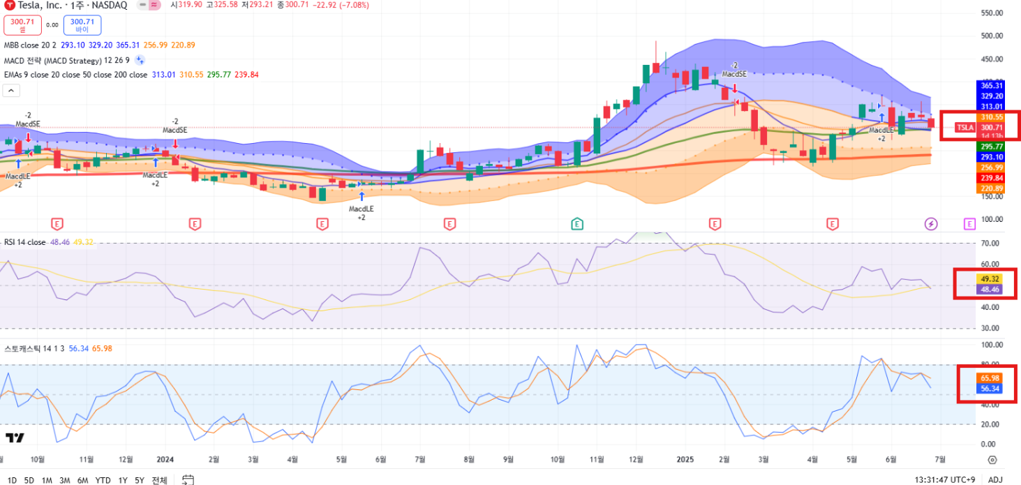 2025년 7월 현재, 테슬라(TSLA) 주가는 다시 하락세로 접어들며 시장의 우려를 사고 있습니다.