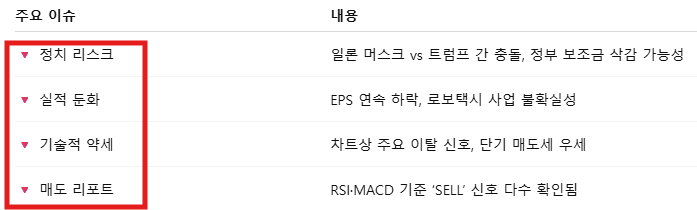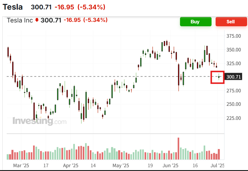2025년 7월 현재, 테슬라(TSLA) 주가는 다시 하락세로 접어들며 시장의 우려를 사고 있습니다.