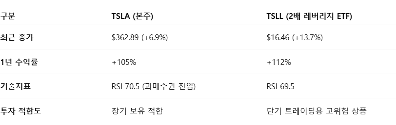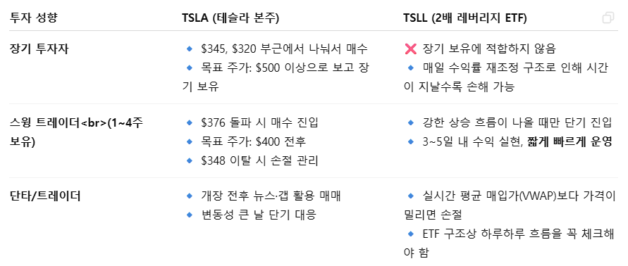 ✅ TSLA vs. TSLL 투자 전략 요약