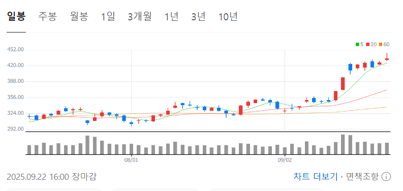 • 9월 22일(현지) 종가 기준 $434.21, 연중 최고가 경신