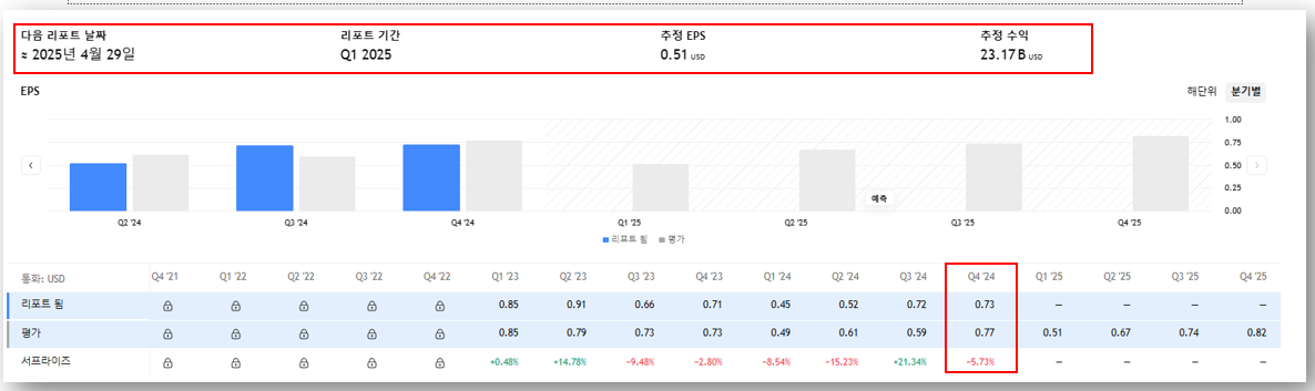 - Q1 2025 예상 EPS: 0.51달러