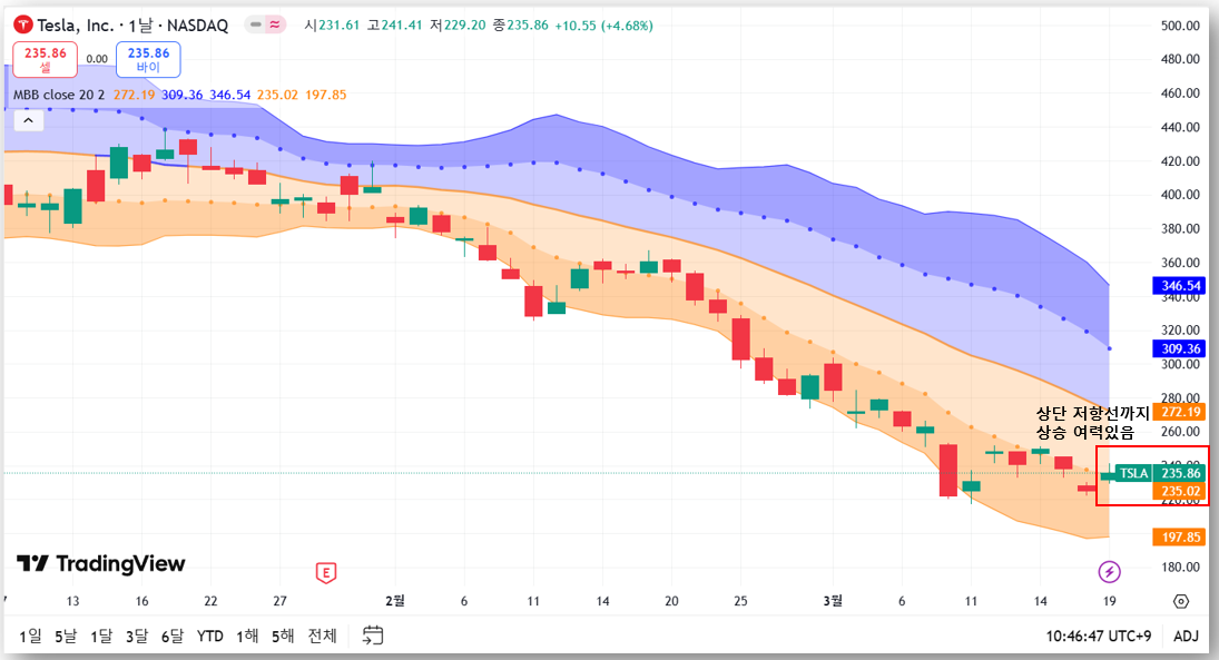 - 하지만 중앙선(235.02달러)을 막 돌파한 상황 → 추가 상승이 가능할 수도 있음