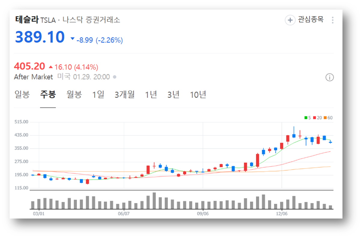 2.테슬라 주가 현황