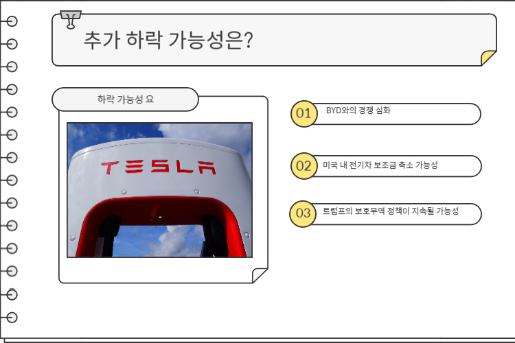 🔎 테슬라의 하락 원인은 단순한 단기 악재가 아니라 기본적인 사업 모델과 경쟁력 약화가 원인입니다. 하지만 일부 분석가들은 반등 가능성을 기대하는 의견도 존재합니다.