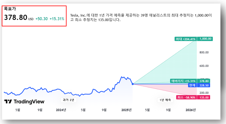 ⬇️테슬라의 목표 주가 한번 살펴볼까요?