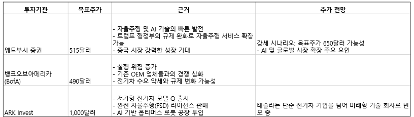 테슬라(TSLA)의 최근 애널리스트들의 목표주가를 살펴보면 다음과 같습니다.