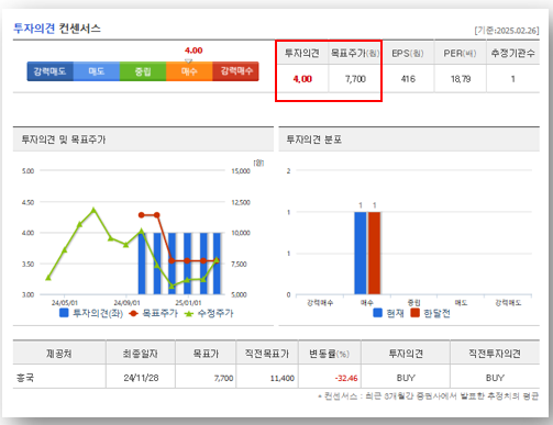 📌 목표주가: 7,700원 (현재 주가 대비 다소 낮은 평가)