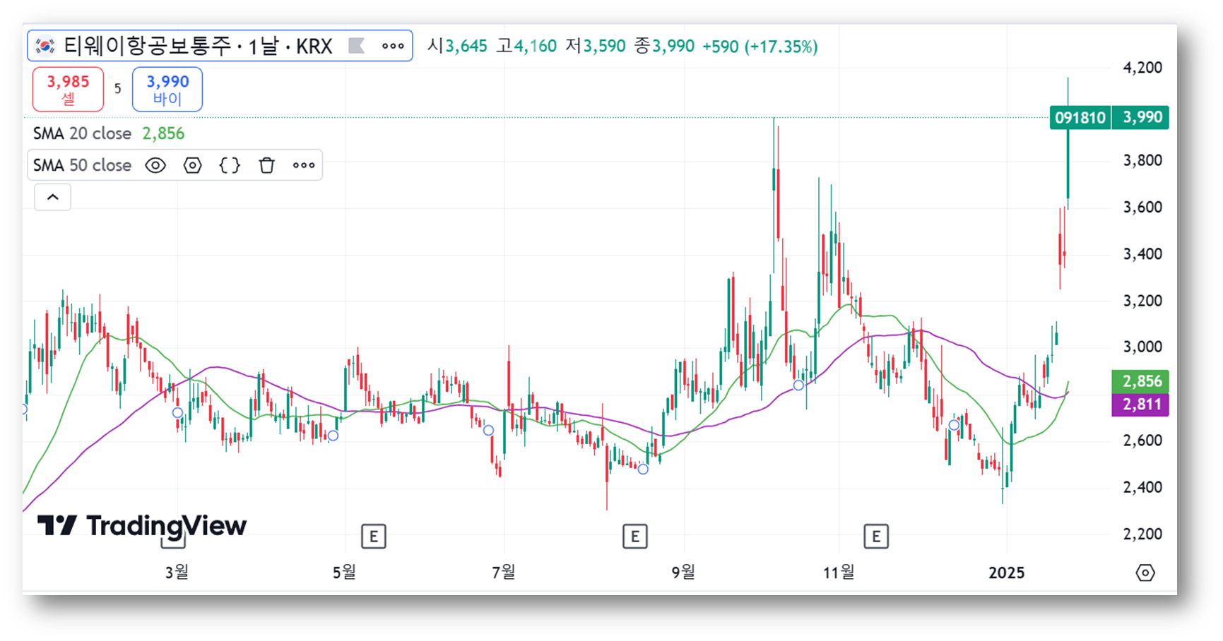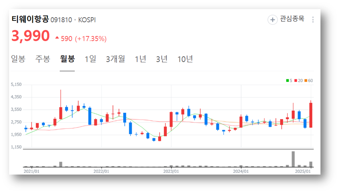 1. 티웨이항공 최고가 경신 뉴스 및 목표 주가