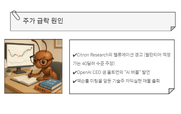 - Citron Research의 밸류에이션 경고 (팔란티어 적정가는 40달러 수준 주장)