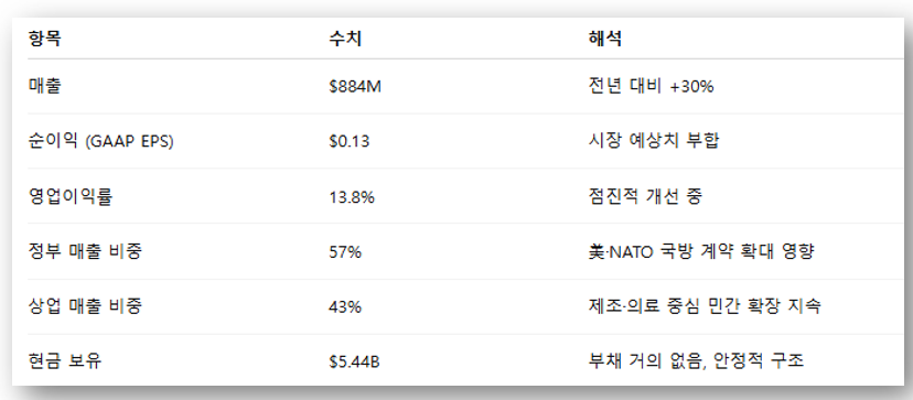 • 매출, 미국 상업 부문 성장률, 신규 정부 계약 수주 여부가 핵심 체크 포인트입니다.