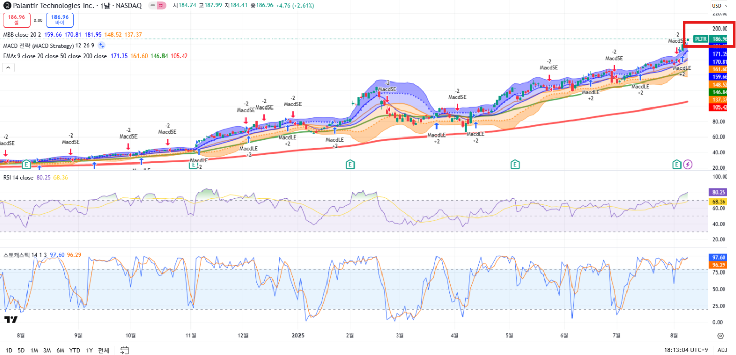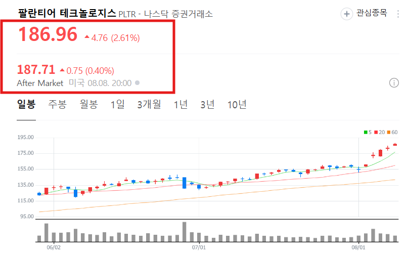 2025년 8월 8일 기준, 팔란티어 테크놀로지스(PLTR) 주가는