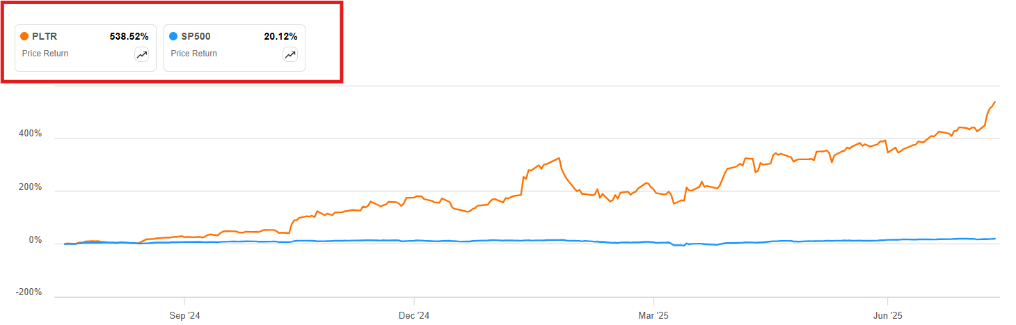 - 1년 상승률: +538% (S&P500 대비 압도적)