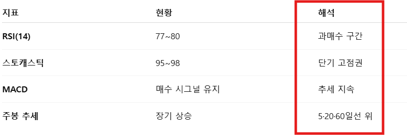 • 주봉·월봉 모두 상승세 → 중장기 강세 유지 가능성