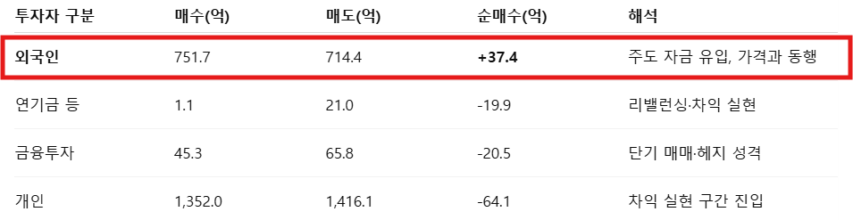📌 특징: 신고가 경신 시도 + 거래대금 급증 + 외국인 매수 주도