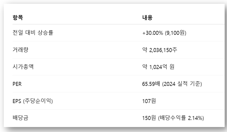 📈 단 하루 만에 30% 상한가 도달한 종목은 흔치 않습니다. 지난 1개월간 수익률은 무려 +83.97%, 3개월 기준 +167.69%에 달합니다.