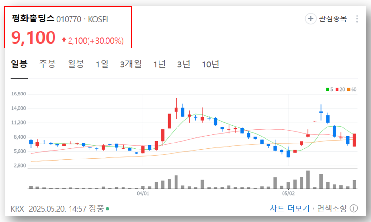 2025년 대선이 2주 앞으로 다가오면서 정치테마주가 들썩이고 있는데요, ‘김문수 관련주’로 분류되는 평화홀딩가 최근 급등세를 보이며 투자자들의 관심을 한 몸에 받고 있는 상황입니다. 5월 20일 장중 30%가 급등하면서 주목 받고 있는데요, 평화홀딩스의 주가 전망에 대해 알아보도록 하겠습니다.