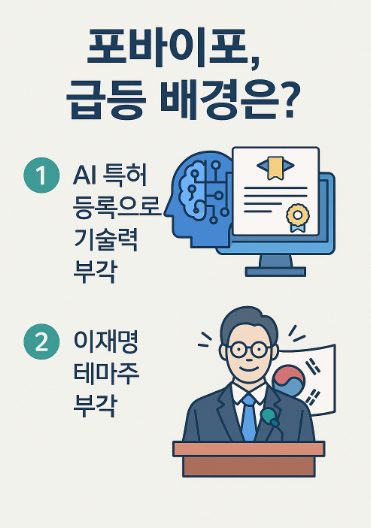 포바이포는 'AI 기술력'과 '정치 테마주'라는 두 축에서 주가 급등 중인데요,