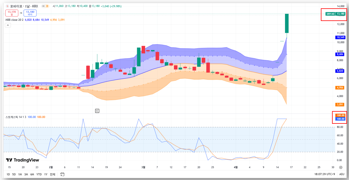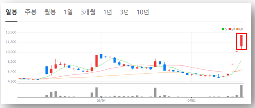 2025년 4월 16일 종가는 13,180원으로 단 3거래일 만에 +119% 급등했는데요,