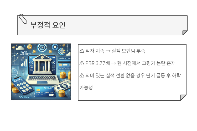 ⚠️ 적자 지속 → 실적 모멘텀 부족
