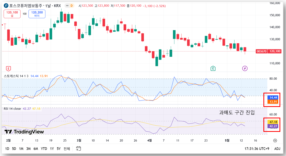 - 스토캐스틱: 과매도 구간 진입