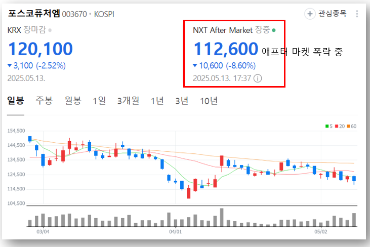 📉 하지만 유상증자 발표 이후, 주가는 장외시장에서 7% 이상 급락하며 투자심리가 일시적으로 위축된 모습입니다.
